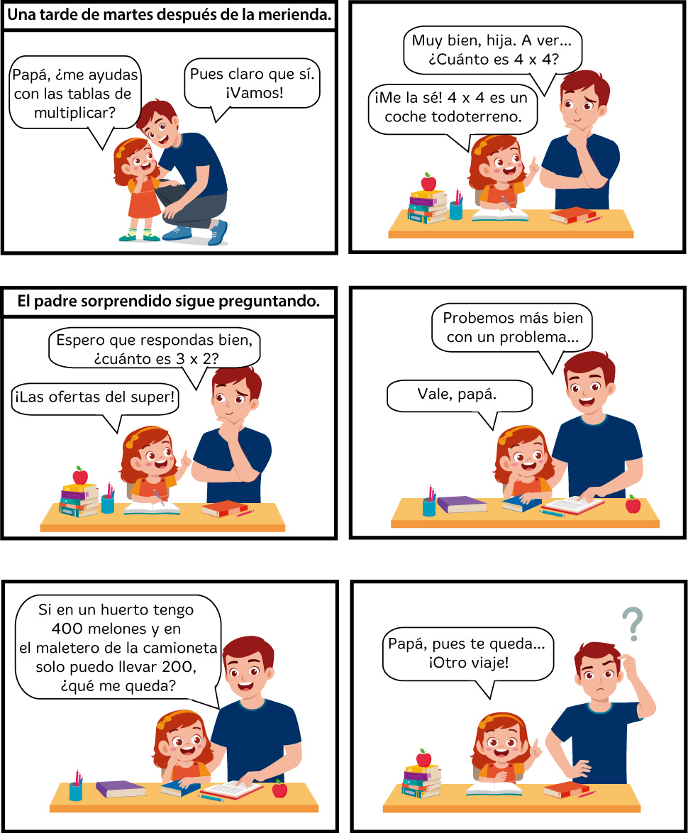 ¿Qué responde la niña a su padre a la pregunta sobre 3 x 2?